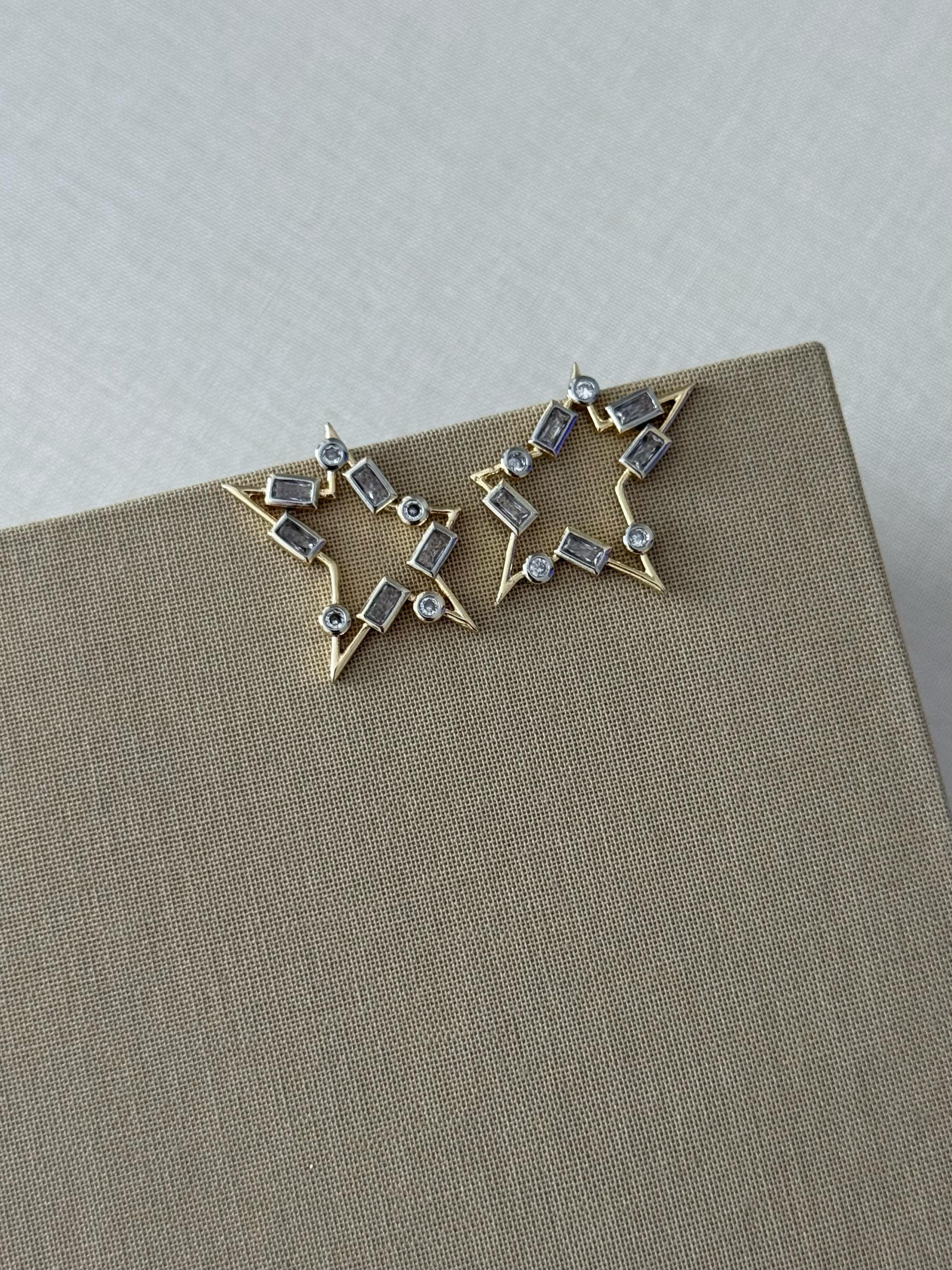 Baget Taşlı Yıldız Marka Model Rodyum Kaplama VİP Küpe