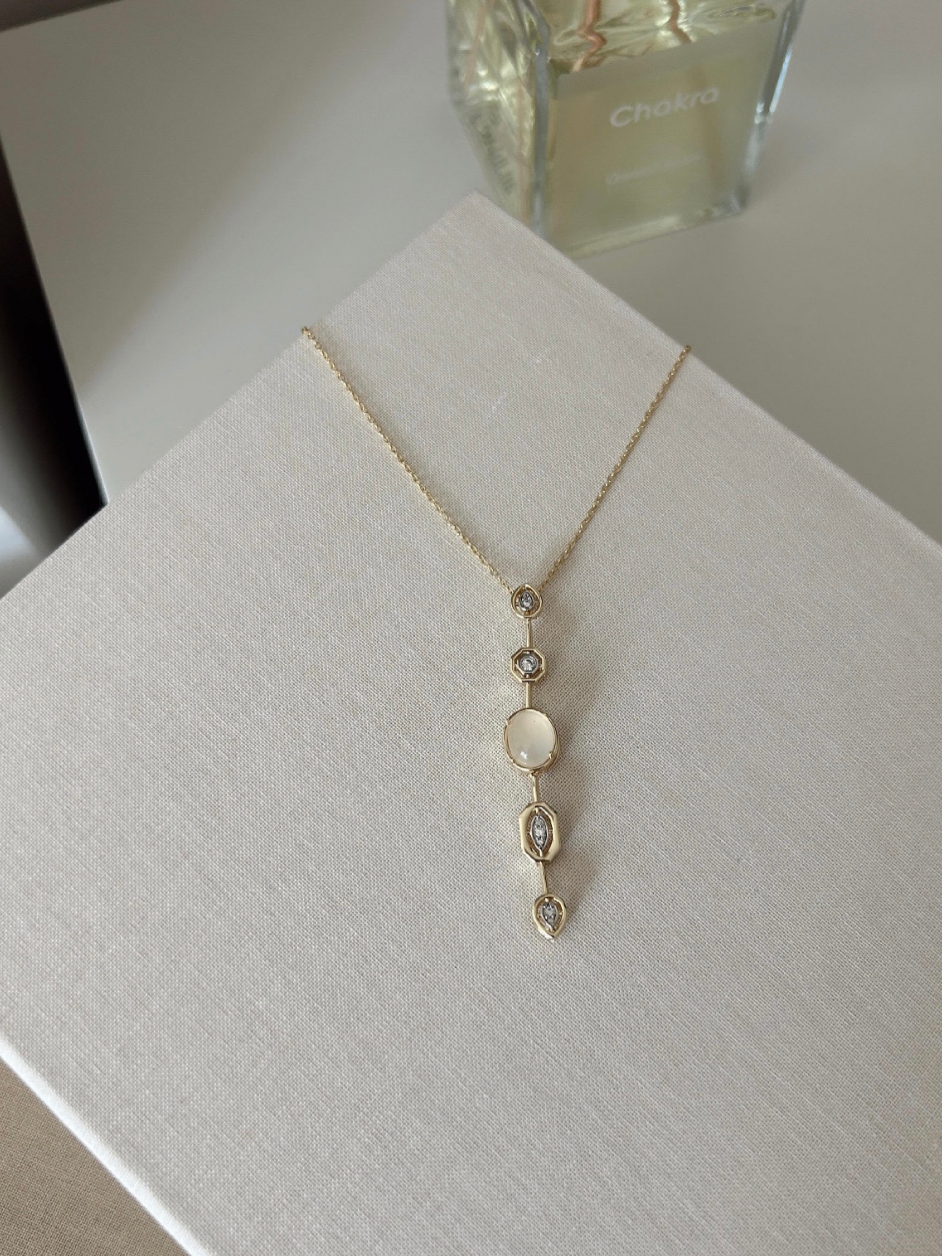 Ekru Taşlı Marka Model Özel Tasarım Sallantılı VİP Kolye