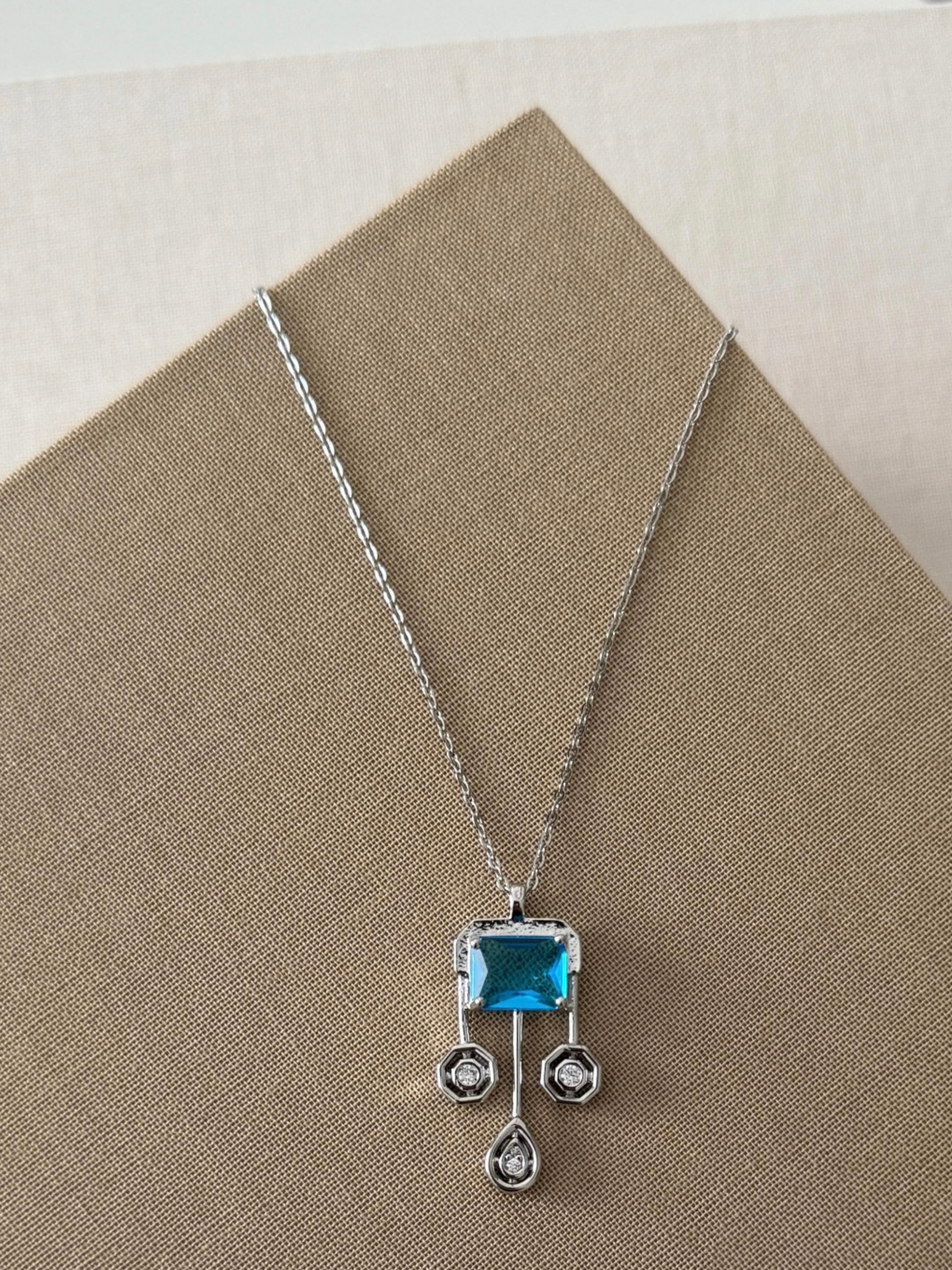 Mavi Taşlı Marka Model Özel Tasarım VİP TRİA Kolye-SİLVER