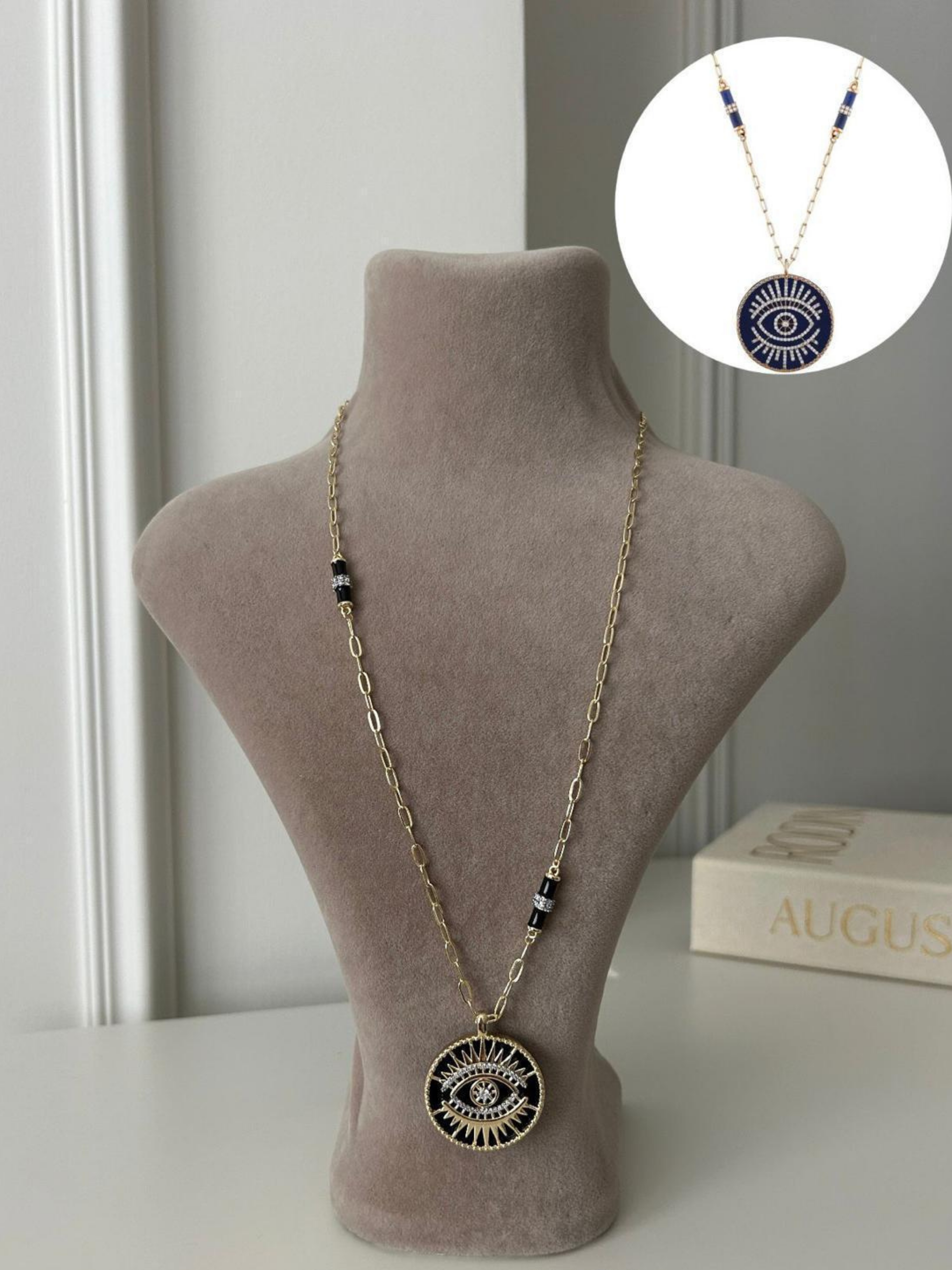Siyah Mineli & Zirkon Taşlı Göz Marka Model Özel Tasarım VİP Kolye