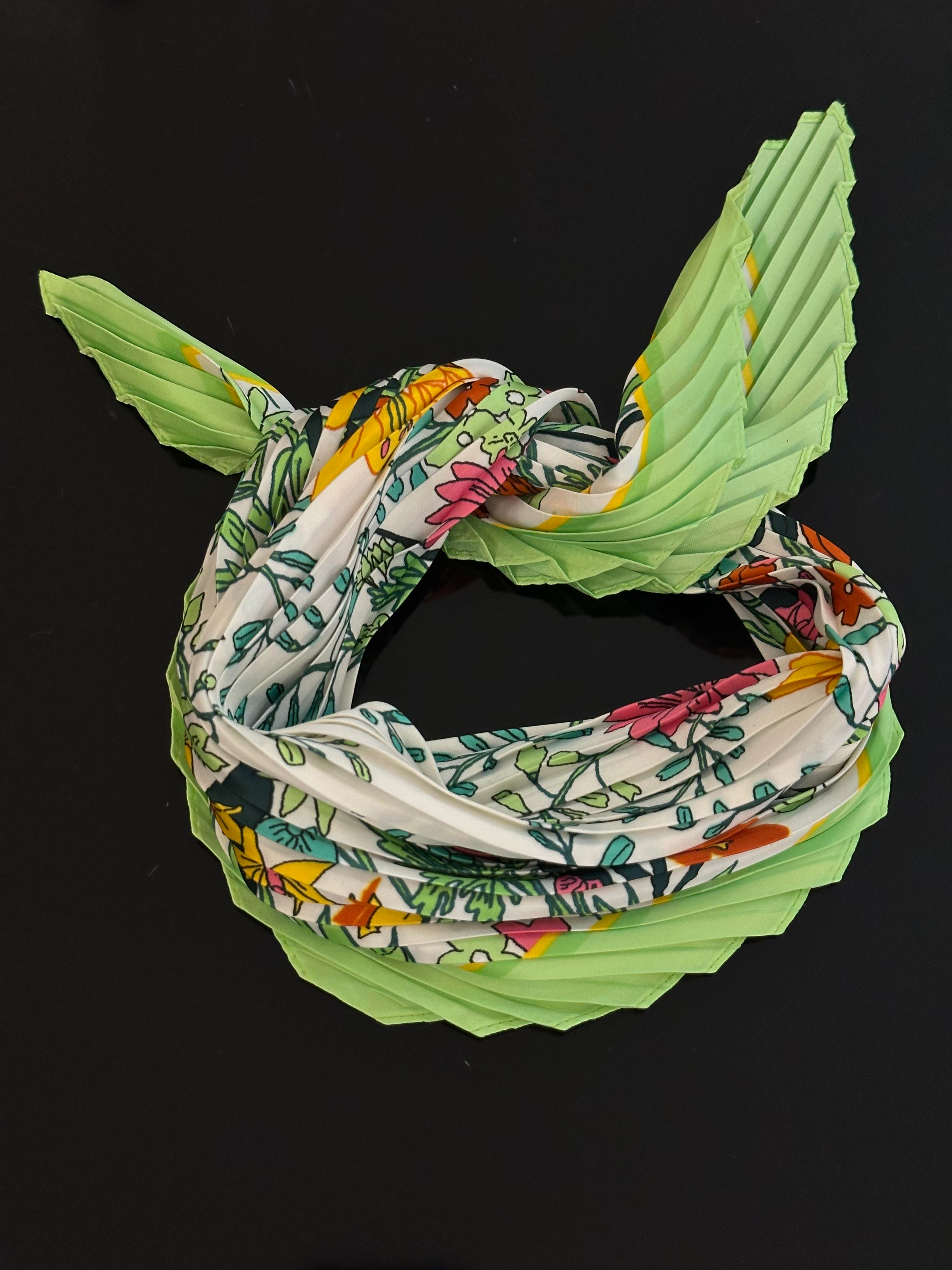Yeşil Çiçek Bahçesi Desen Piliseli Saten Fular