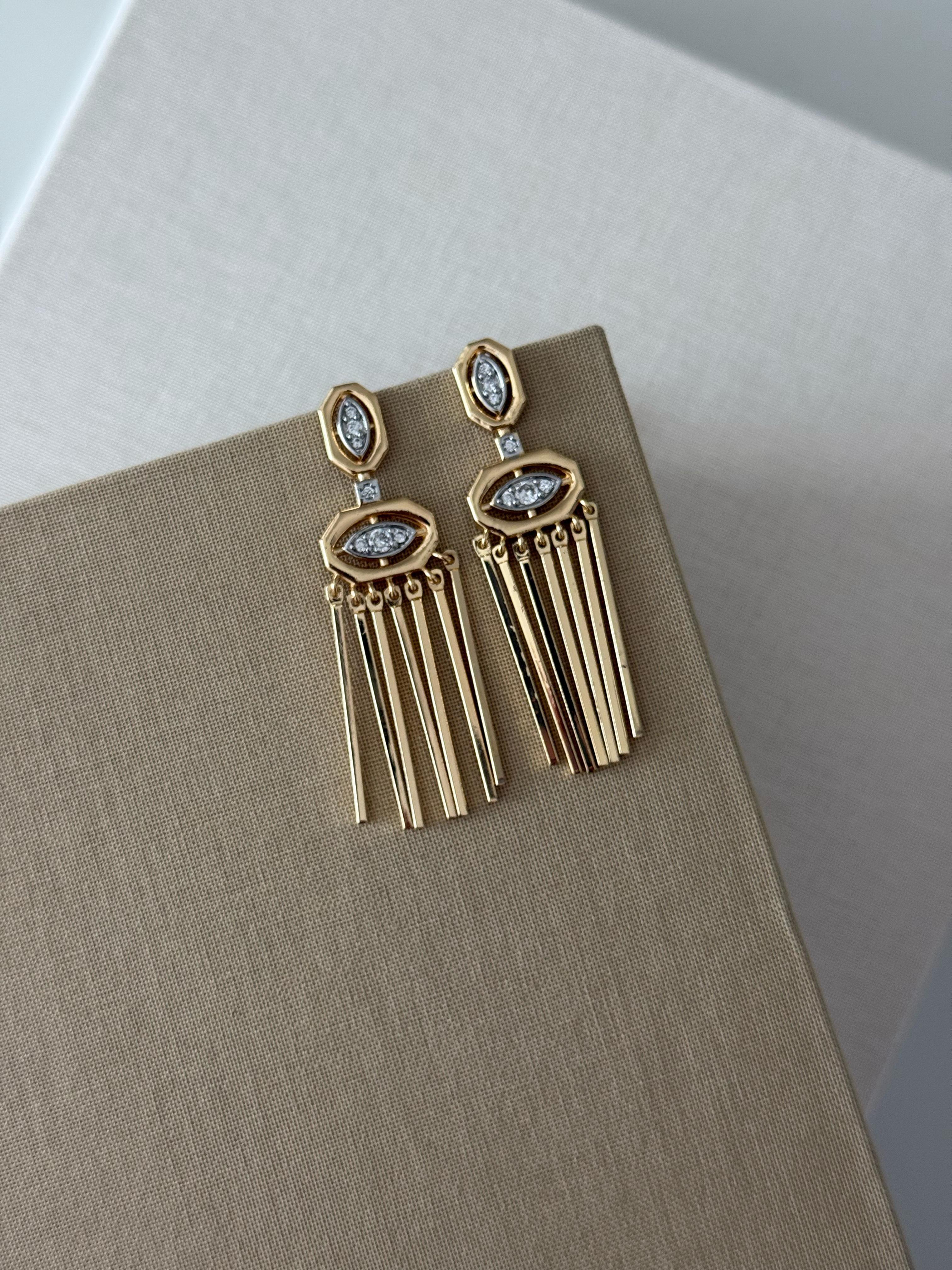 Zirkon Taşlı Marka Model Özel Tasarım Rodyum Kaplama VİP Sallantılı Küpe